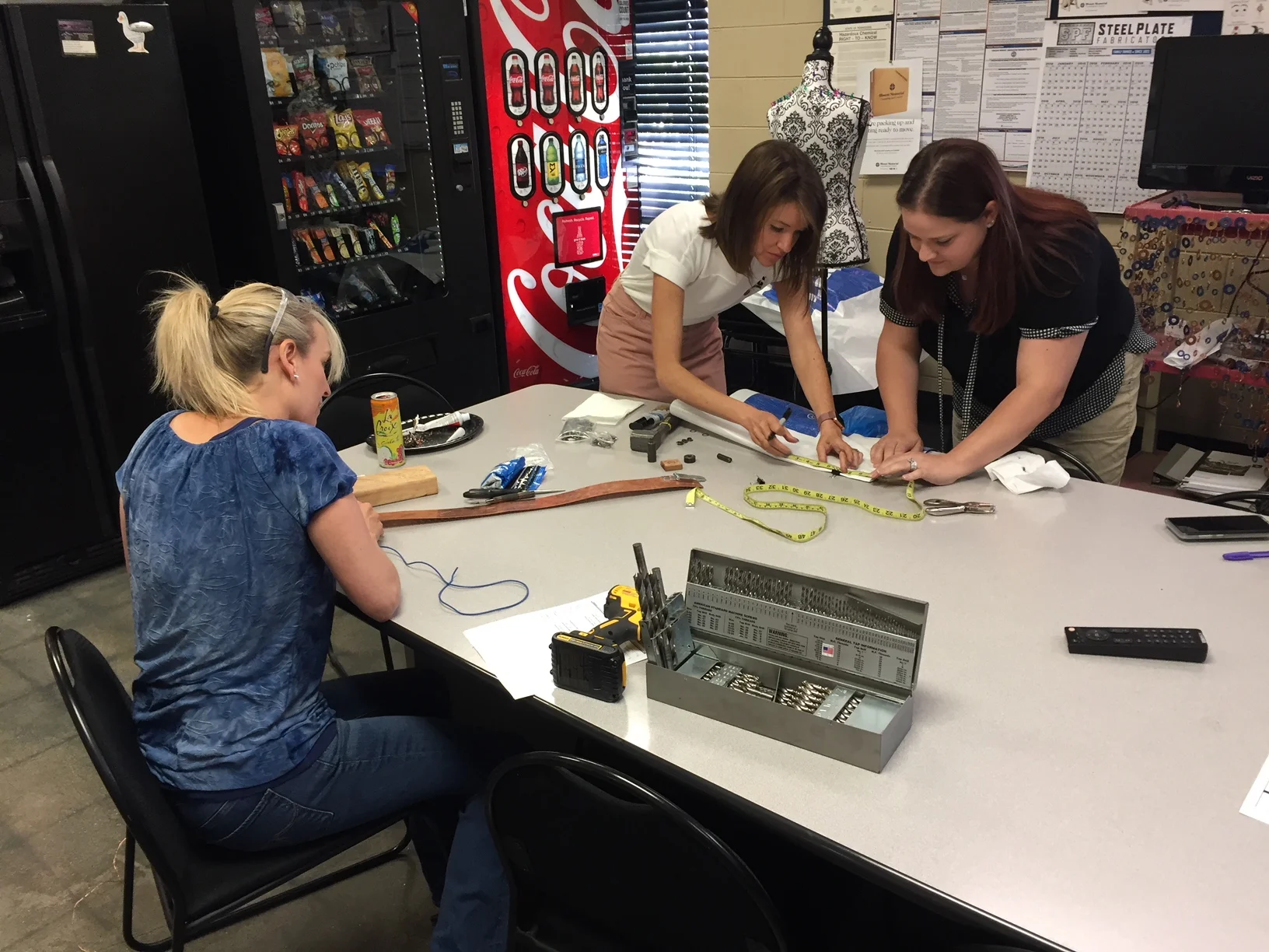 ICC International was once again a sponsor of the Blount Habitat for Humanity Women Build Luncheon. The theme this year was Construction Couture. All teams were challenged to build an outfit using at least 50% construction material. Our team design featured Lowe's house wrap as the base, a beautiful skirt made with over 1000 steel and plastic washers, copper belt and a sawblade and steel plume fascinator. The accessories included halogen bulb earrings, a drawer pull ‘diamond’ ring, and a charm bracelet complete with wingnuts, bolts and nuts. To complete the ensemble, we included a house key necklace.